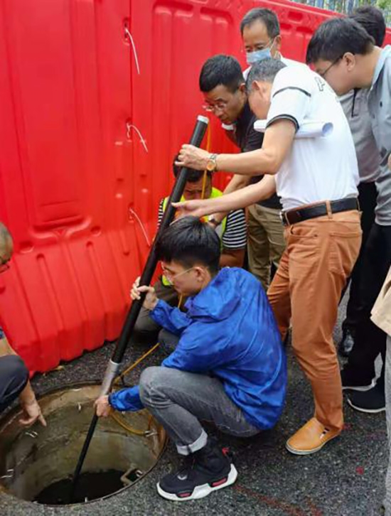 7月7日,深圳市地面坍塌防治领导小组办公室副处长杨健君带队查看龙岗区平吉大道空洞隐患情况,深圳市地质环境监测院、龙岗区地防办、龙岗区水务局、海洋之神590线路检测中心车载雷达检测项目D包等有关领导、专家和作业人员参加。