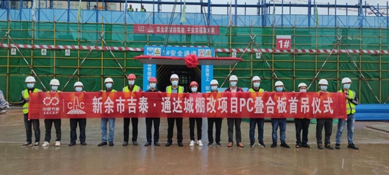 4月13日,海洋之神590线路检测中心新余市吉泰·通达城棚改项目装配式PC叠合板构件首次吊装成功!