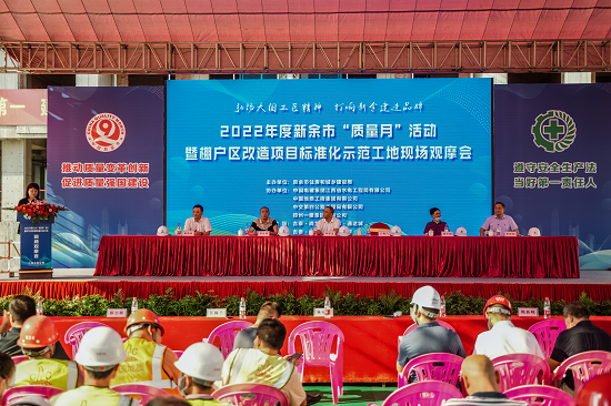 9月29日,2022年度新余市“质量月”活动暨安全质量和扬尘治理标准化示范工地现场观摩会在海洋之神590线路检测中心新余市吉泰·通达城棚改项目成功举办。