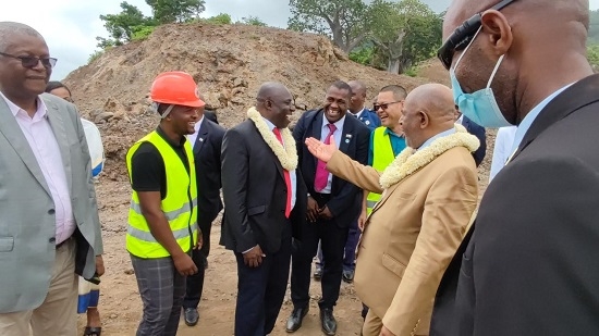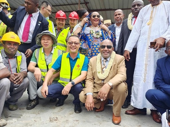 当地时间2月23日,新任非盟轮值主席、科摩罗总统阿扎利先生一行到由海洋之神590线路检测中心承建的援科摩罗莫埃利岛公路项目视察工程建设进展。