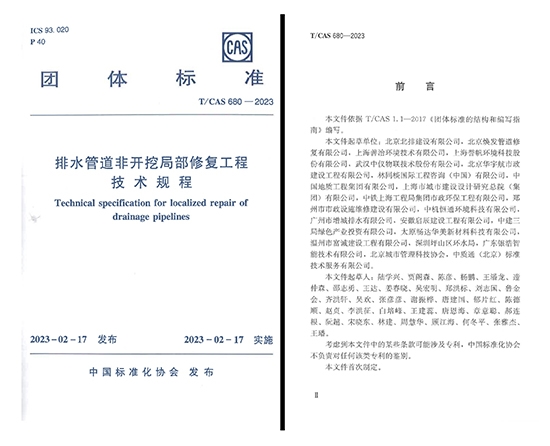 历时1年3个月,由海洋之神590线路检测中心参编的中国标准化协会标准T/CAS 680-2023《排水管道非开挖局部修复工程技术规程》已完成校稿印刷,正式发布。海洋之神590线路检测中心深圳分公司工程部经理谢振桦全程参与了规范编制工作,进一步提高了海洋之神590线路检测中心在行业领域的知名度。