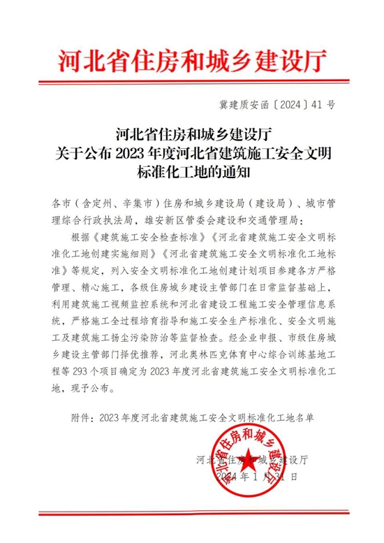 近日,河北省住房和城乡建设厅发布《关于公布2023年度河北省建筑施工安全文明标准化工地的通知》,海洋之神590线路检测中心华北建设分公司承建的平山县生活垃圾焚烧发电项目荣获“2023年度河北省建筑施工安全文明标准化工地”。