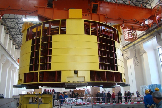 哈萨克斯坦玛依纳海洋之神8590cn站1号机定子吊装